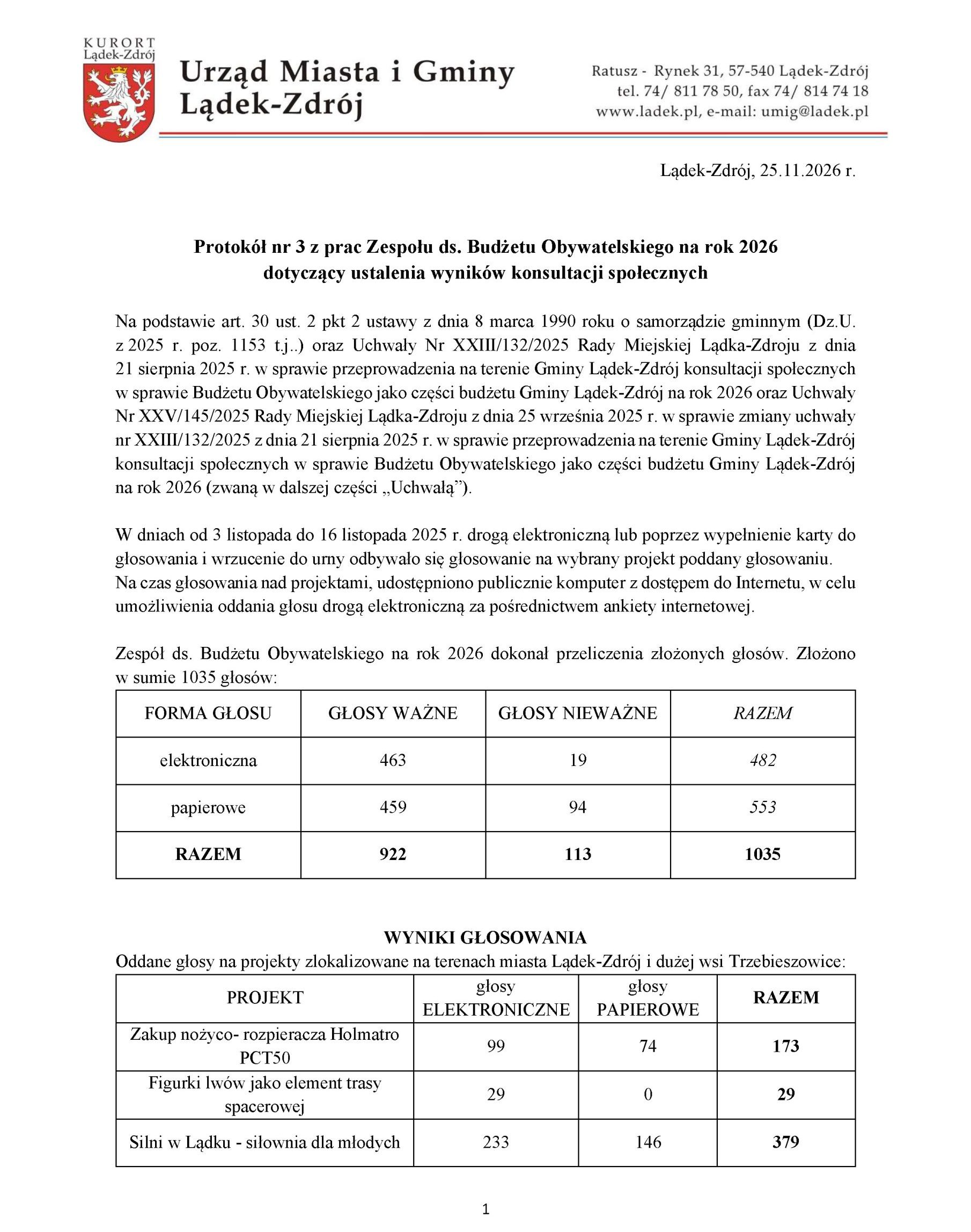 o godz. 15:30 w Sali Konferencyjnej nr 26 II p. Urzędu Miasta i Gminy Lądek-Zdrój